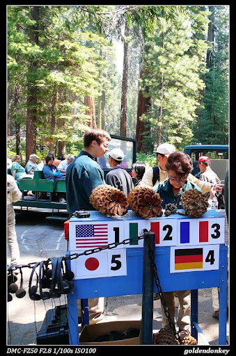 參觀Mariposa Grove有兩種方式, 步行或是搭乘導覽車, 腳踏車與寵物是不可以進入這裡的. 導覽車半小時才有一班, 全長7英哩, 時間一小時15分, 中間停靠兩個大站Mariposa Museum及Grizzly Giant可以下車但只停留10分鐘. 成人票$16, 62歲以上敬老票$14, 5~12歲兒童票$10.